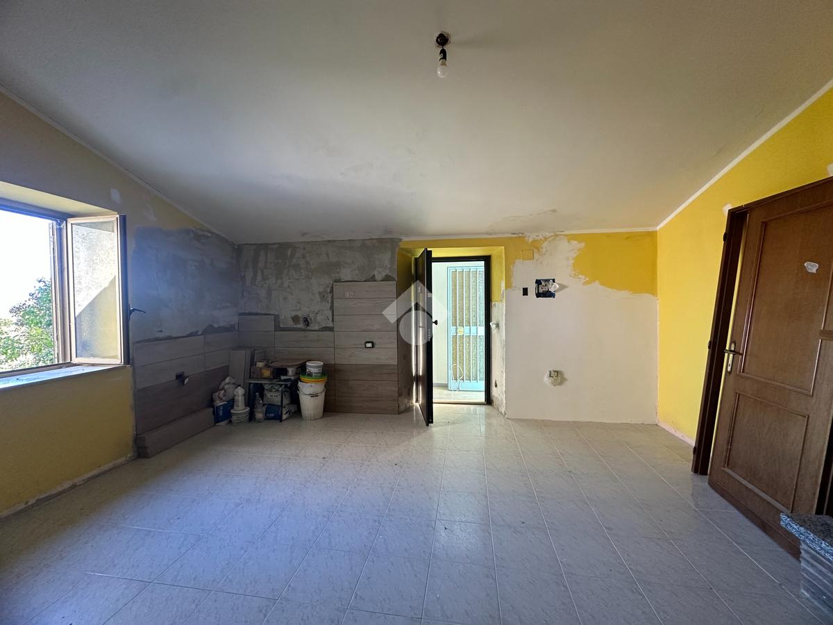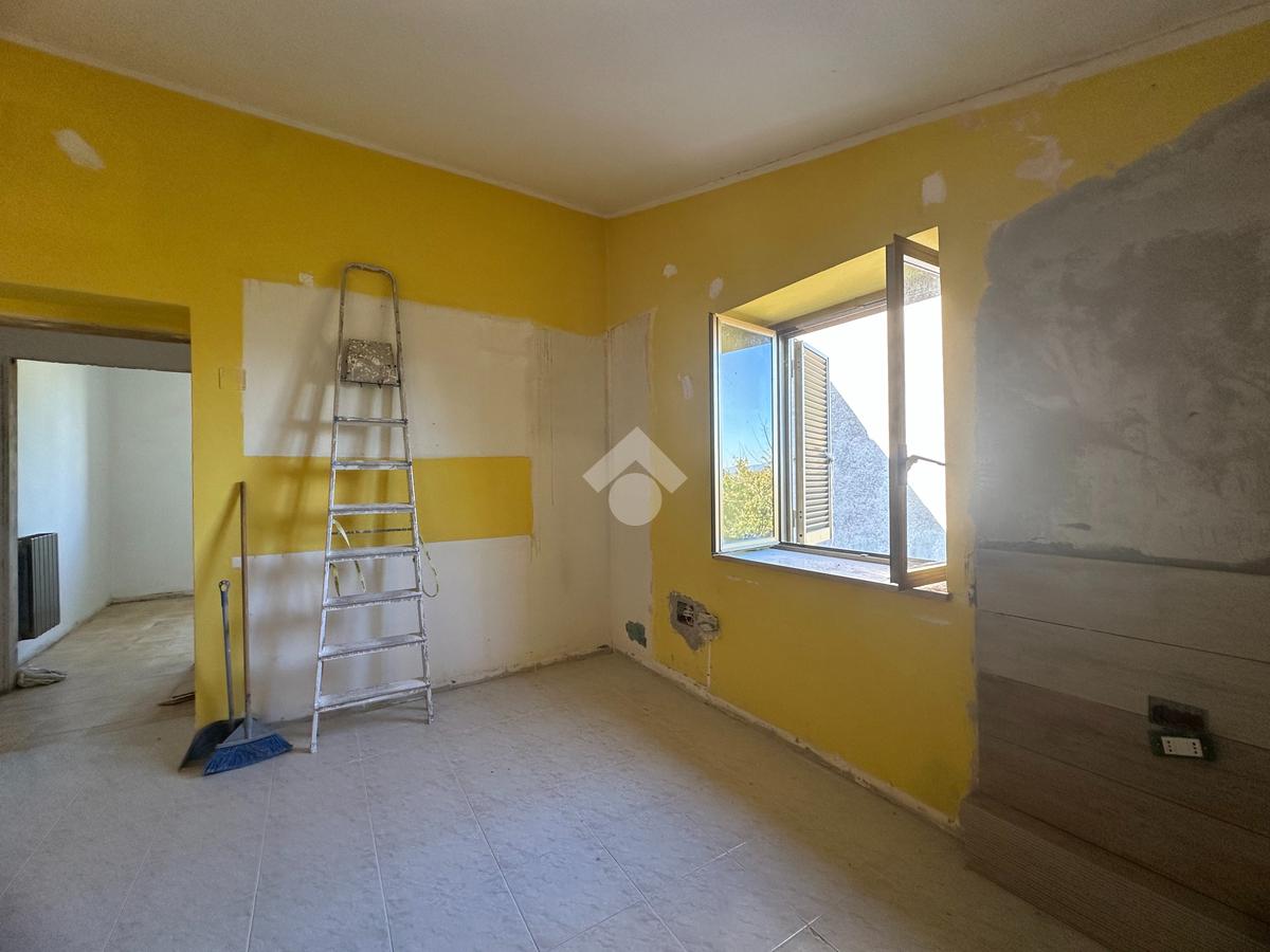 Tramite scala esterna si accede all'abitazione, composta da: soggiorno, angolo cottura, disimpegno, bagno finestrato con doccia, una camera media e una camera matrimoniale.